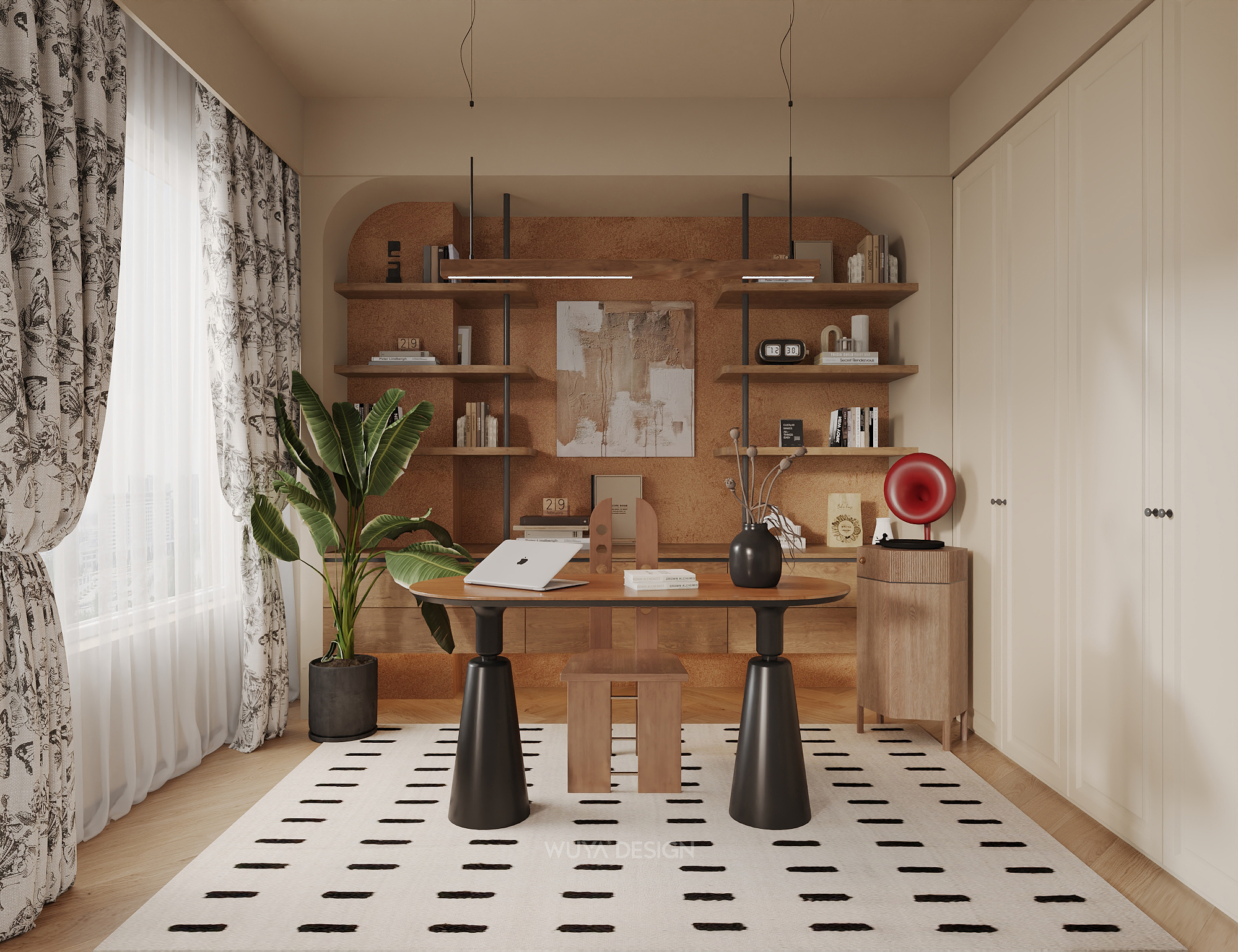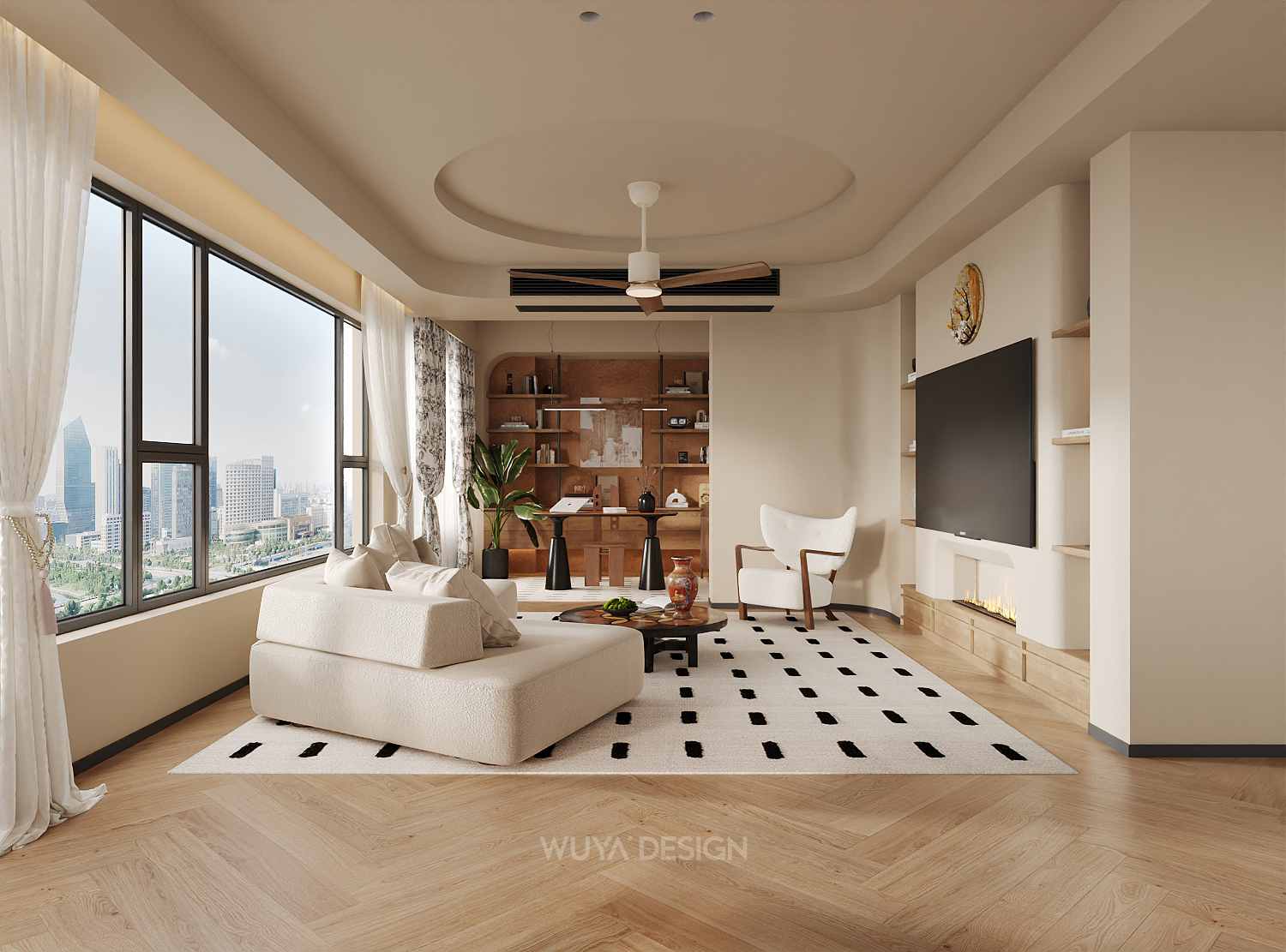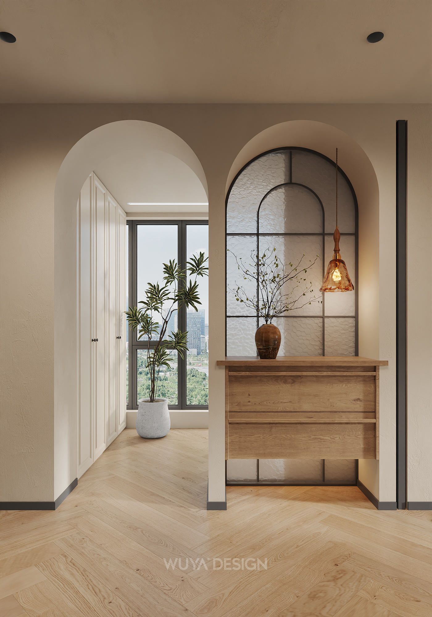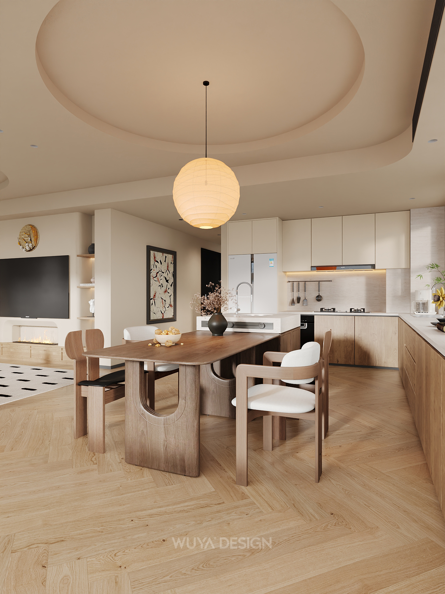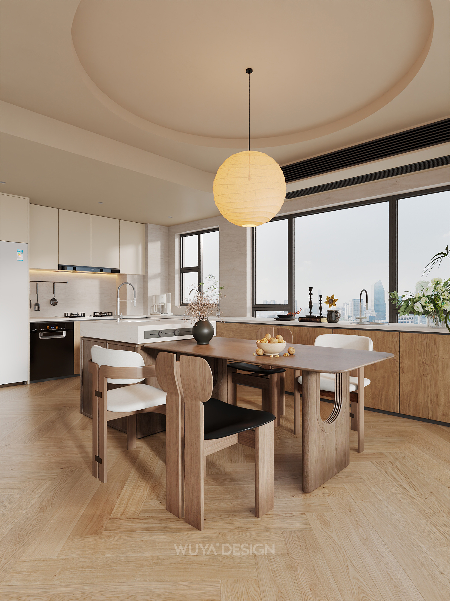 🔶整体色调以木纹➕米色漆为主 🔶原木侘寂风自带的自然氛围,让家松弛感十足 🔶干净利落的硬装设计再点缀一些自然材质,一进家门一股放松感便袭来~ 🔶整体统一又柔和的色调,辅以全屋木地板通铺,让空间更加温馨静谧。