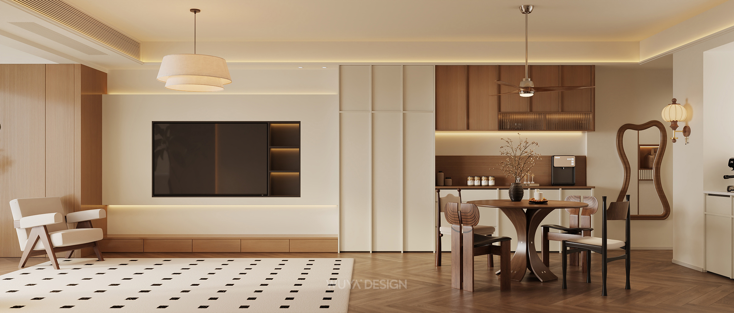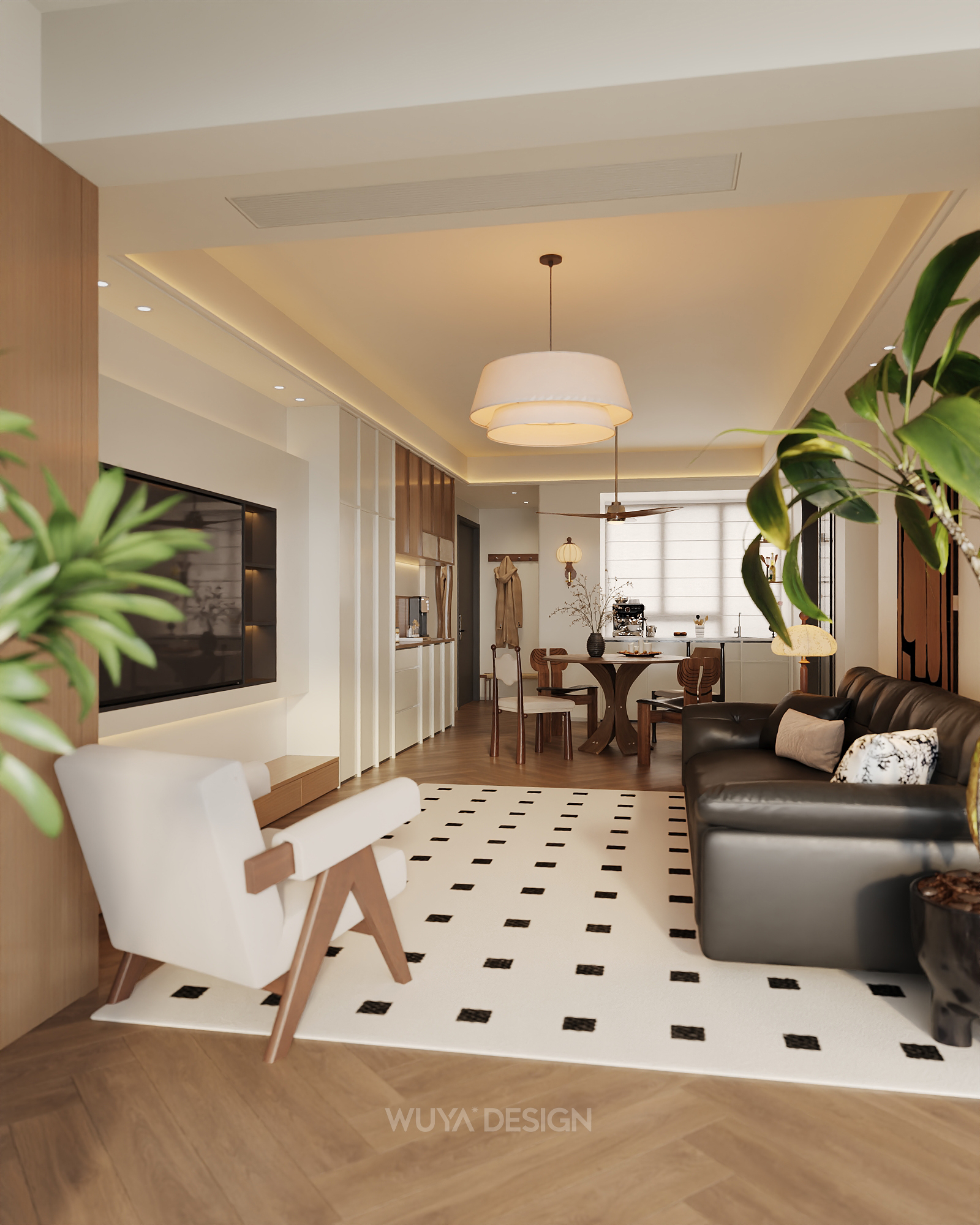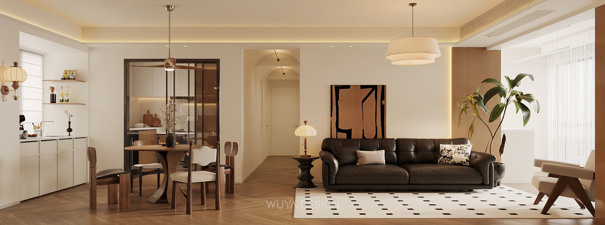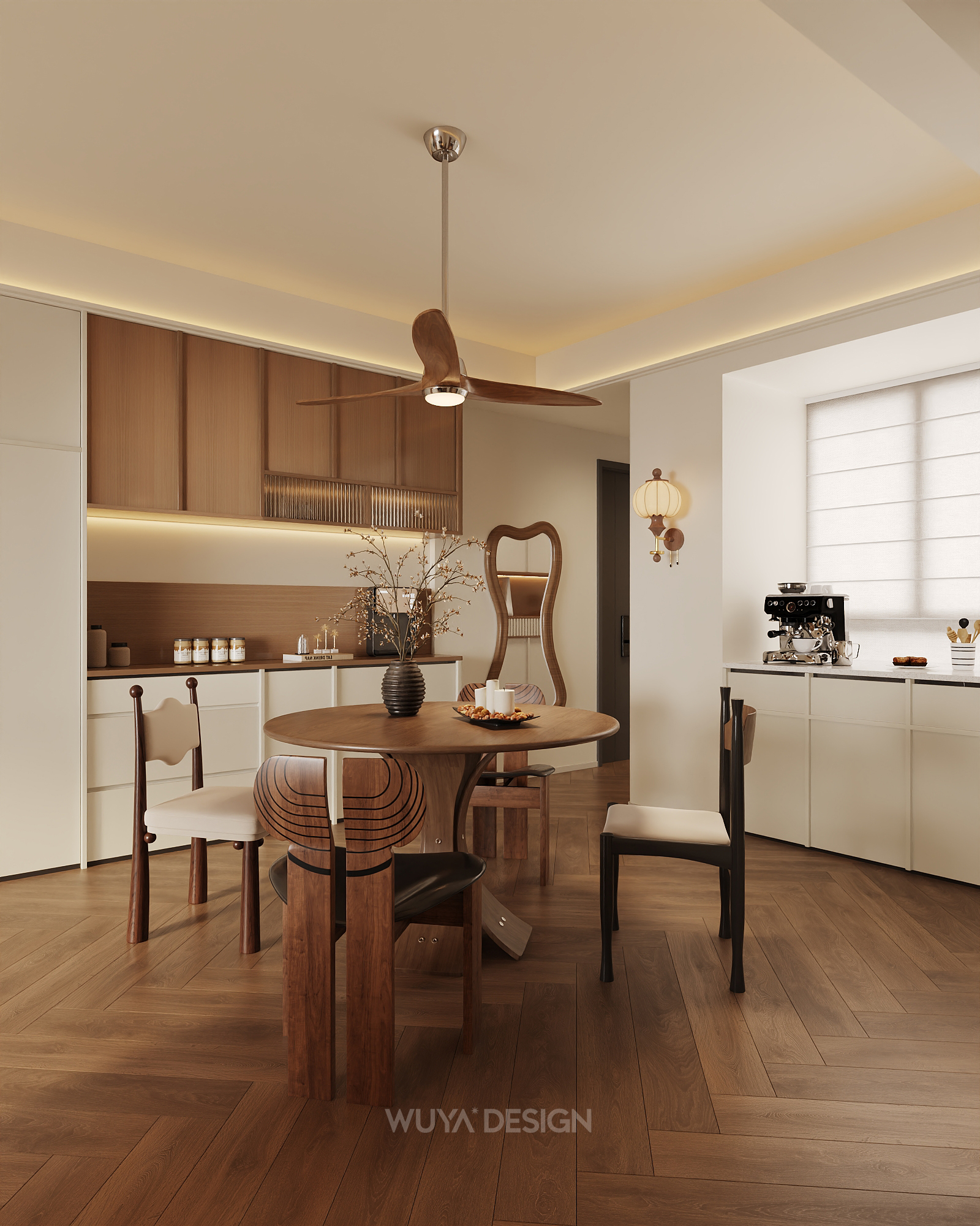 治愈系装修细节: 主色调:奶油白+原木色 全屋以低饱和度的奶油白为基底,搭配温润的原木元素,像是给家打了一层柔光滤镜