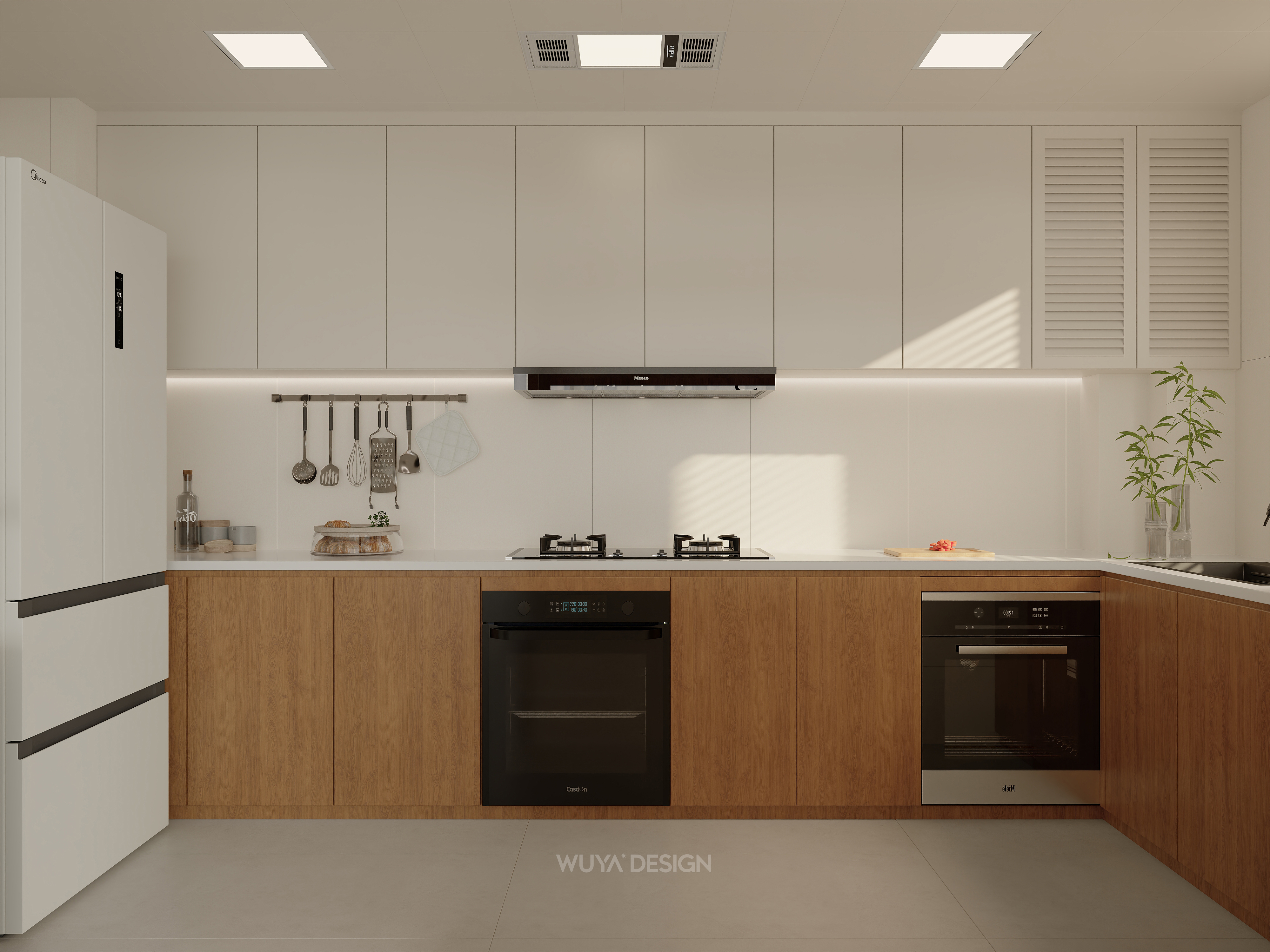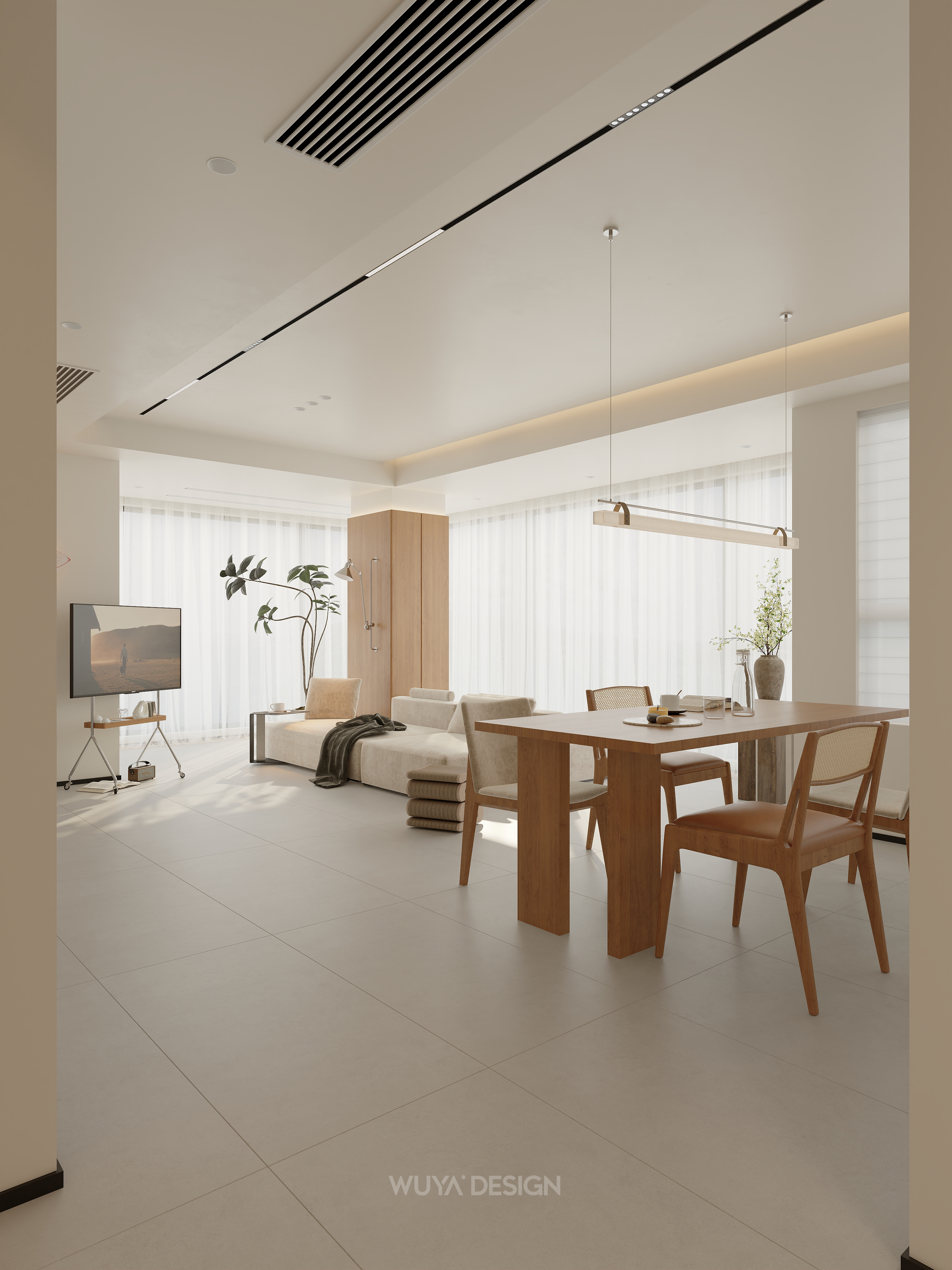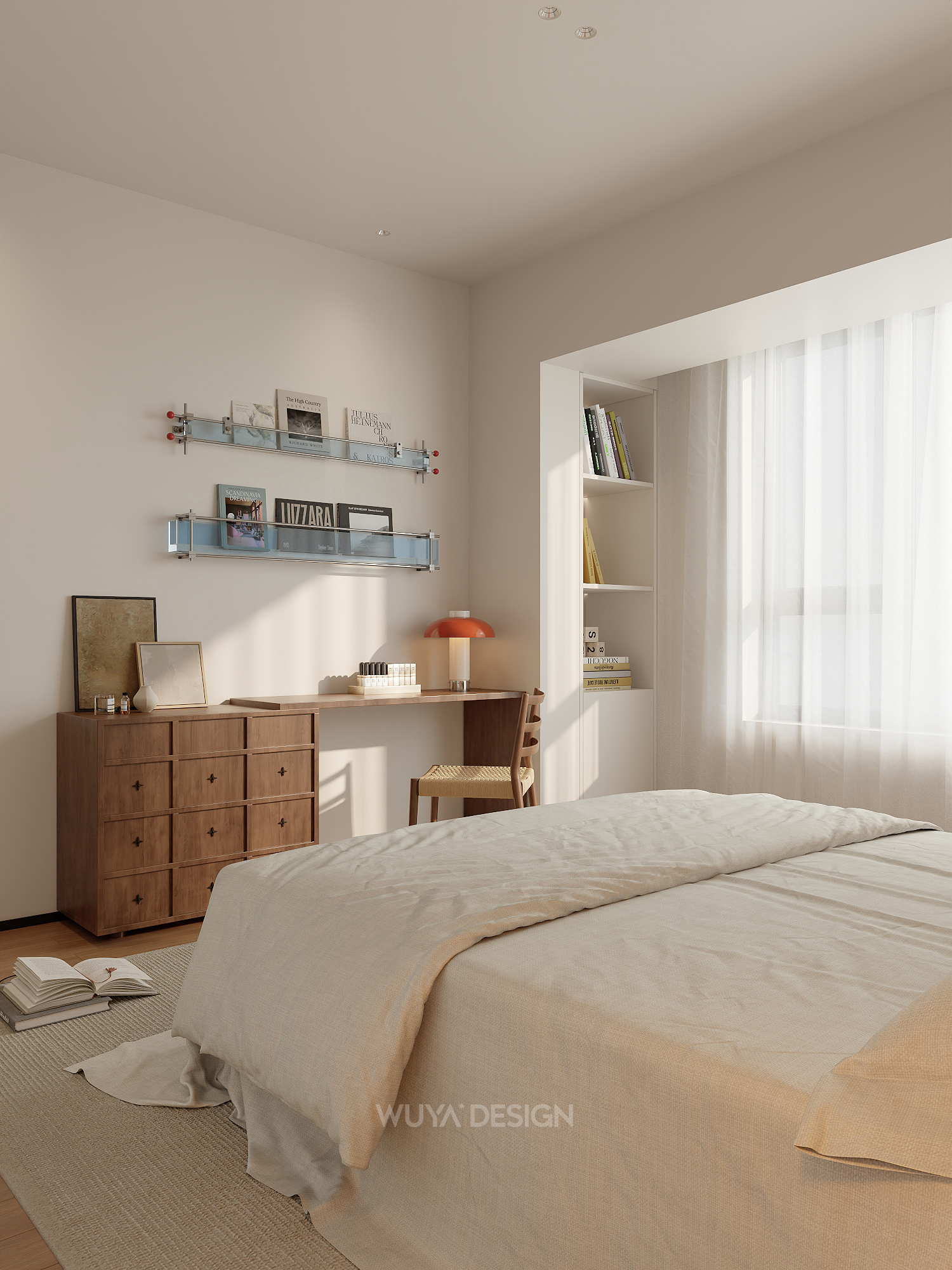 以原木色为核心,搭配白色或低饱和度素色,营造自然、柔和、安静的居家氛围。原木色家具、地板与白墙相得益彰,大量运用樱桃木、白橡木、胡桃木等天然木材,保留木材的原始纹理和温润触感,通常与白色、奶黄色、奶咖色、棕色、原木色等低饱和度的颜色相搭配,创造出轻盈的肤感裸色效果。