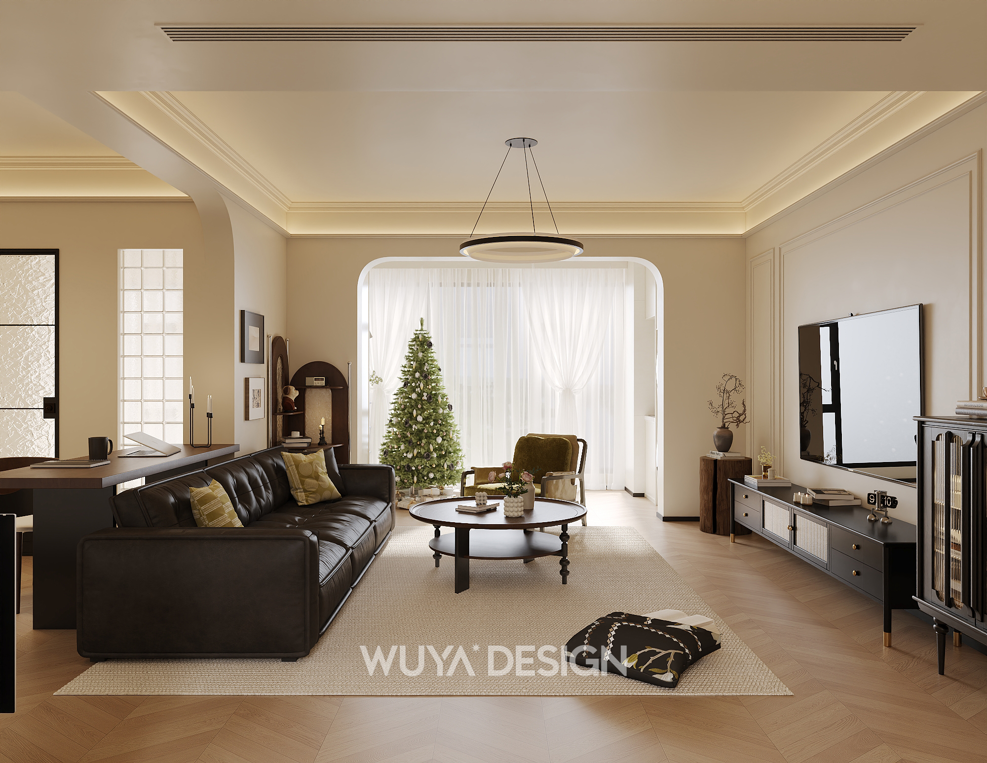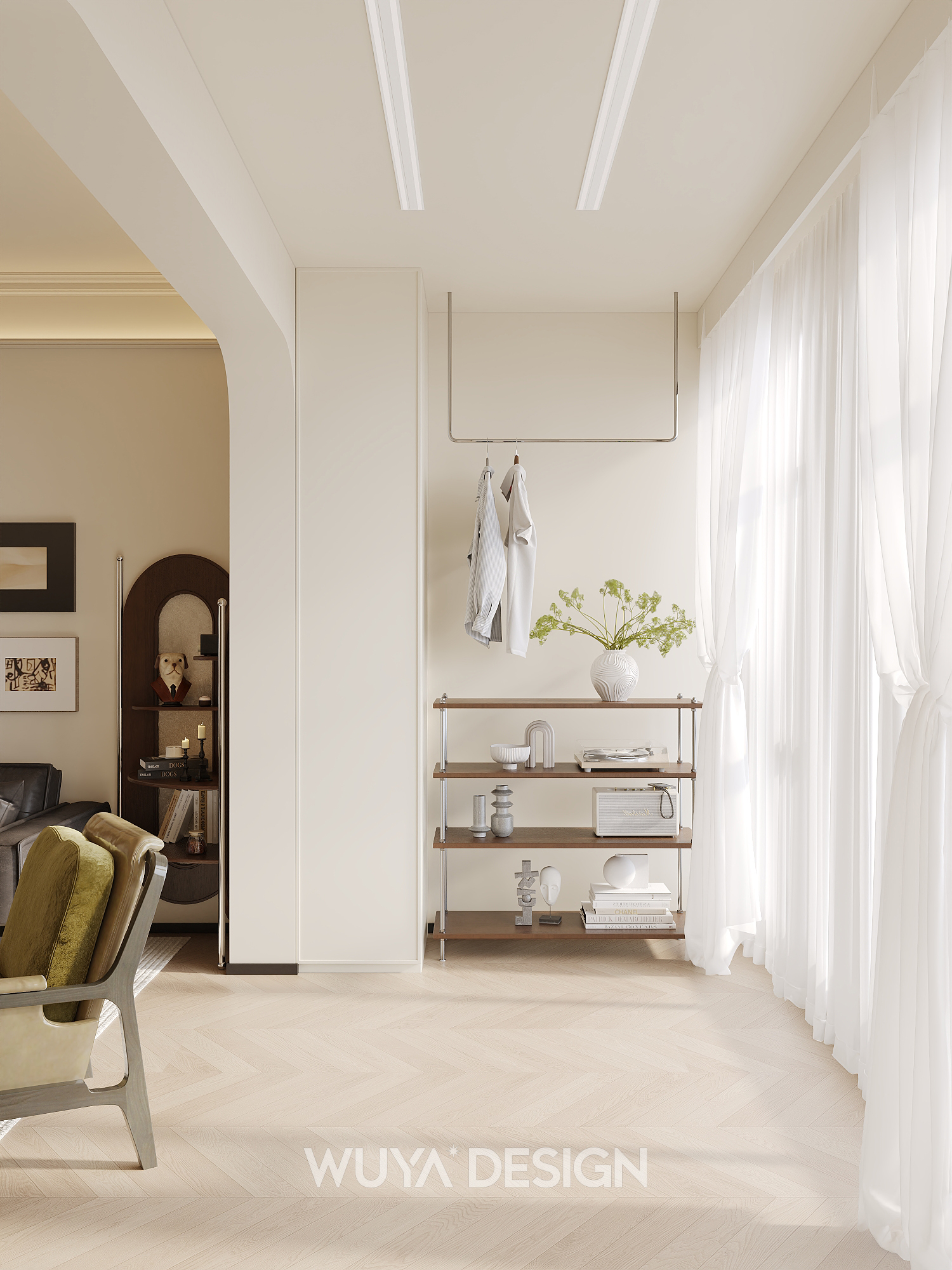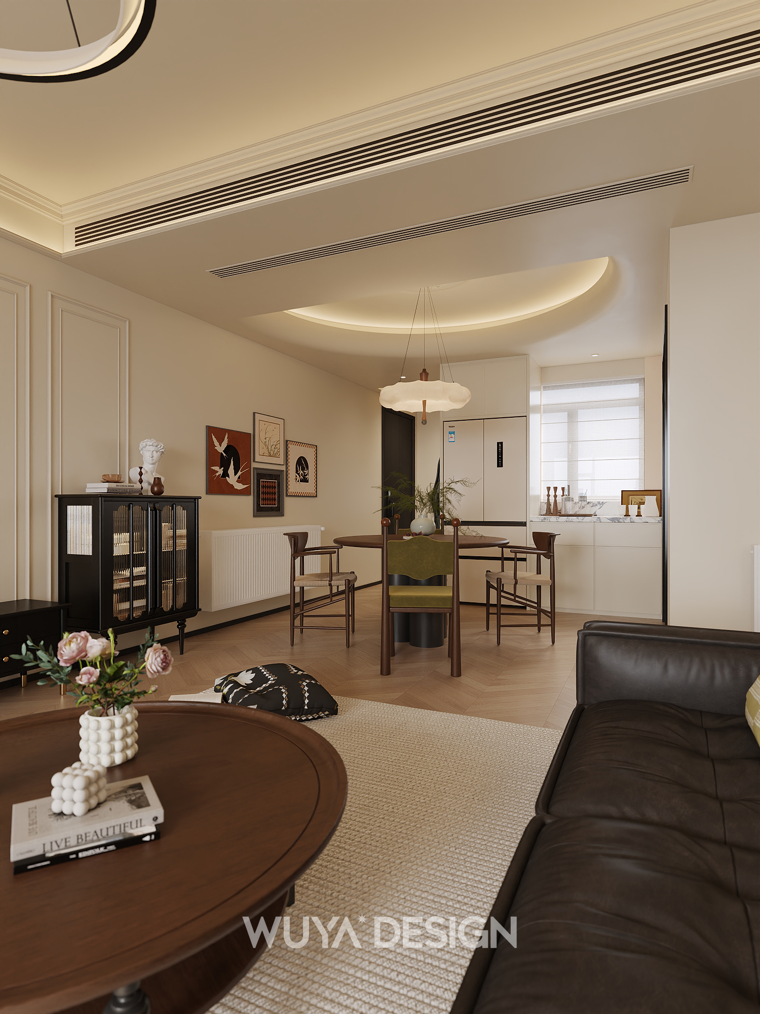 古朴而典雅的中古胡桃色软装家具,那种独特的木色纹理,就像是岁月留下的痕迹。当它们与轻法式风格以及人字拼木地板相互映衬时,整个家居空间仿佛有了灵魂,能够让身处其中的人同时收获高级感与那种来自惬意与放松的氛围。