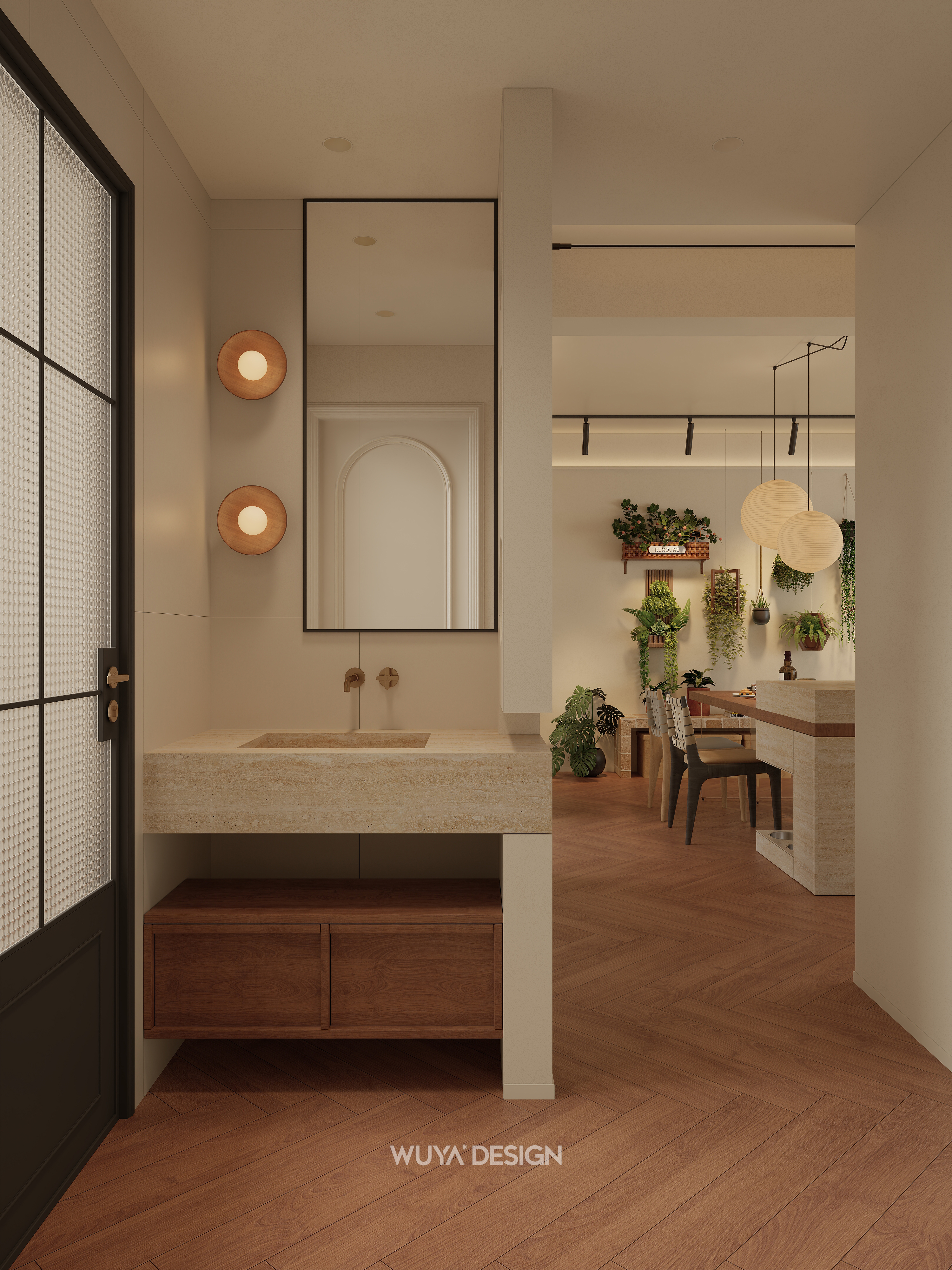 🌿开放式的布局和独特的摆放让空间松弛感绝了 🌿颜色上的搭配很极简,连木色用的都很克制,小户型想显大的秘诀就是简洁 🌿材质上多用哑光,增加绿植让家更具呼吸感~