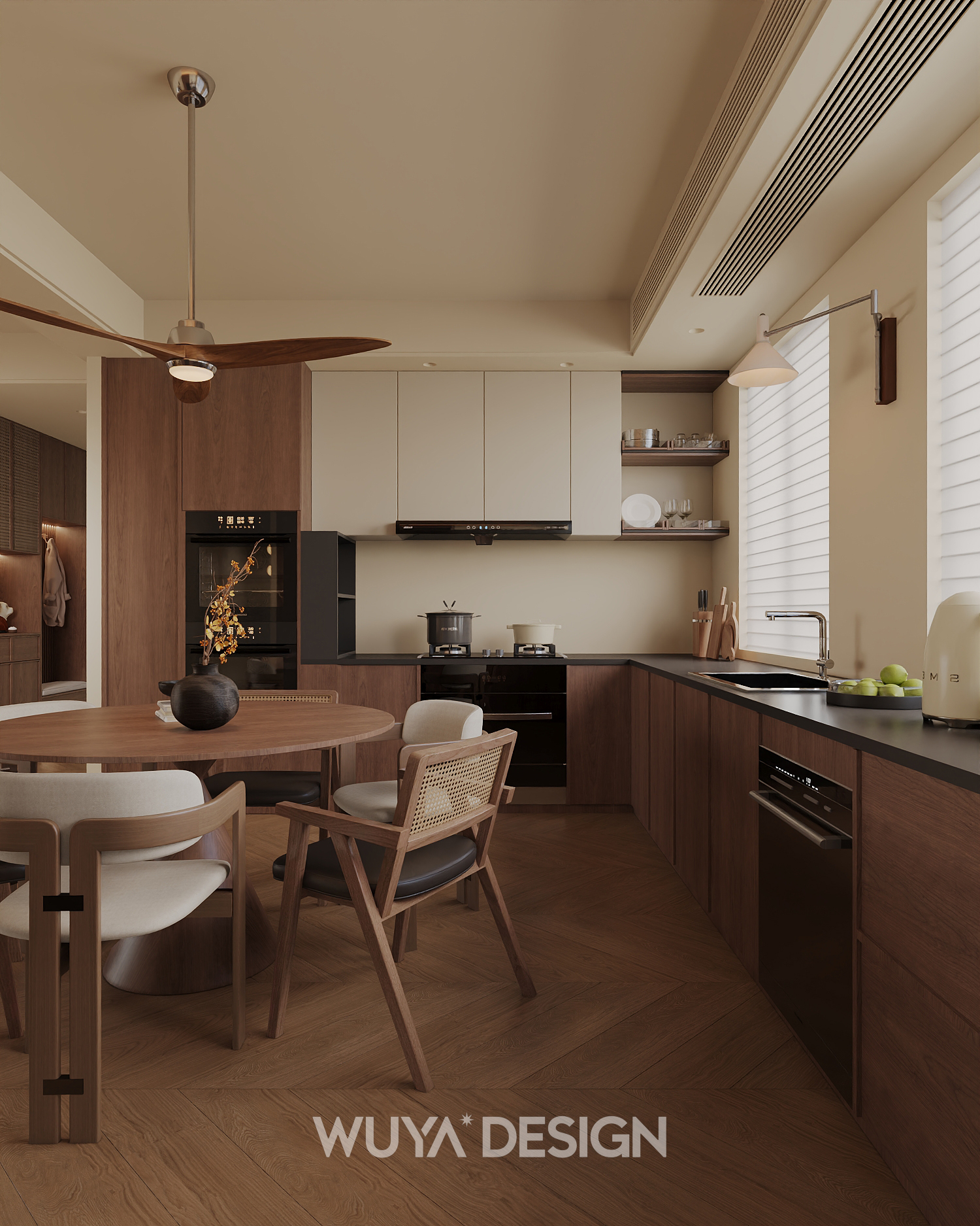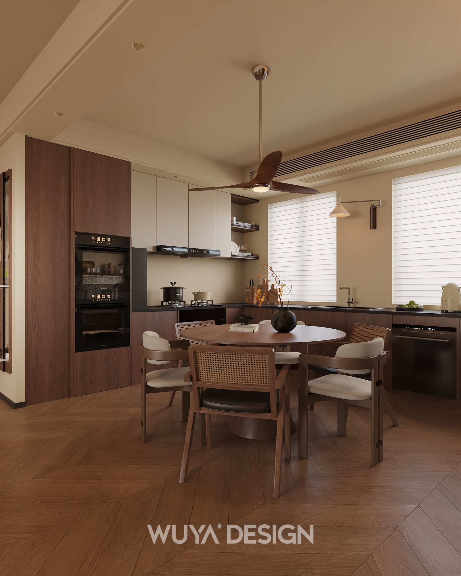 ⚫️⚪️🟤整体硬装上,选择了胡桃木色调,胡桃木大面积使用需要注意的就是空间的颜色比例,没搭配好很容易显得过于深沉。☀️很喜欢这样松弛感满满的家,仿佛让人可以一秒脱离疲惫的状态